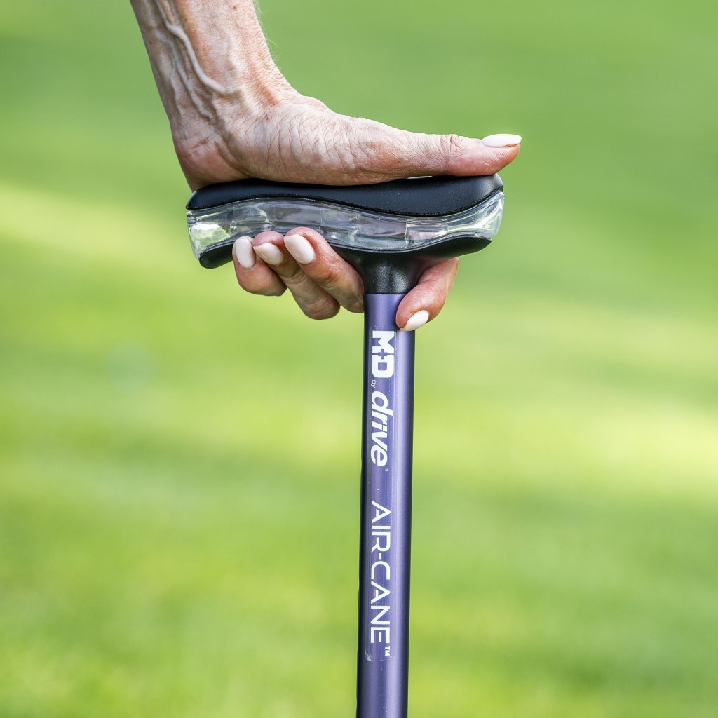 Designed for hands that feel every ache, the Air-Cane™ features an Airgonomic™ handle that adapts to your grip and distributes pressure evenly for comfort with each step. The unique Flex Grip™ Air Tip compresses as it meets the ground, gripping uneven surfaces for unmatched stability. Water-dispersing treads offer secure footing even on wet surfaces. Lightweight yet durable, the Air-Cane™ moves with you, not against you, so every walk feels easier, safer, and more natural.