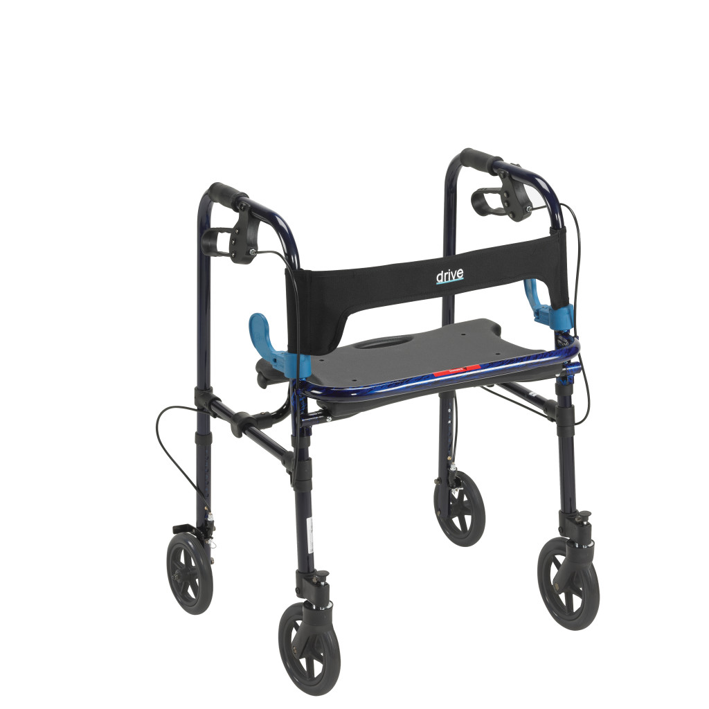 The Drive Medical Clever-Lite Adult Walker with 8″ Wheels (Model Number 10243) is a versatile, hybrid mobility aid engineered to function seamlessly as both a traditional walker and a rollator, featuring a sturdy 1-inch diameter anodized extruded aluminum frame that weighs just 11 pounds while supporting up to 300 pounds, offering exceptional durability and lightweight portability for users navigating indoor or outdoor environments with confidence. Its innovative flip-up seat, adjustable from 19.5 inches to 23.5 inches in height with an 11-inch depth and 17-inch width, allows effortless transitions between seated rest and stepping inside the frame for walker-style support, complemented by a soft, flexible backrest for added comfort and security during breaks, while the oversized 8-inch front wheels with smooth-rolling casters and rear glide push-down brakes ensure superior maneuverability over varied surfaces like carpets, thresholds, or sidewalks with intuitive, reliable stopping power. Ergonomic hand grips adjust in one-inch increments from 32.5 inches to 39 inches for a personalized, strain-reducing fit, and the patented dual-lever side-paddle release enables one-handed folding into a compact form equipped with a convenient carry handle, ideal for storage in vehicles, closets, or travel without sacrificing stability. Pre-assembled for immediate use and finished in a sleek gray tone that blends functionality with subtle style, this walker promotes greater independence and reduces fatigue for seniors, post-surgical patients, or individuals with mobility limitations during daily tasks, errands, or rehabilitation routines. Backed by Drive Medical’s limited lifetime warranty against defects in materials and workmanship for the original purchaser when acquired through authorized dealers, this essential device delivers long-term reliability and peace of mind for sustained performance and comfort.