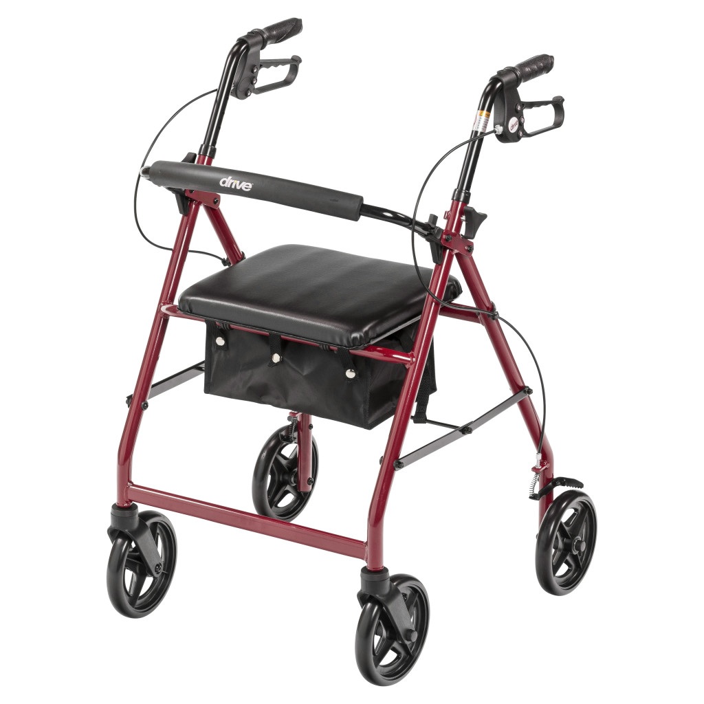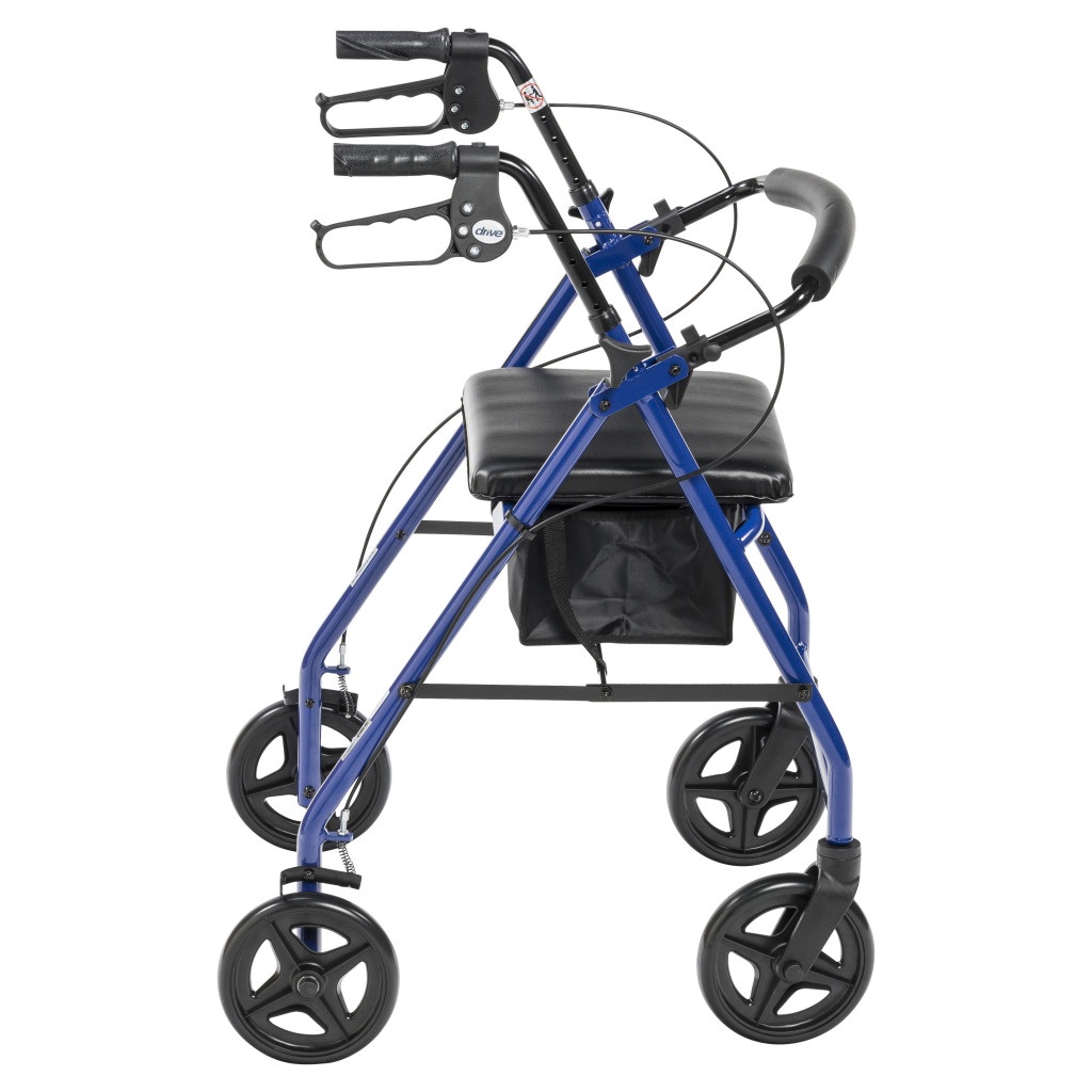 The Drive Medical Aluminum Rollator (Model R728) is a lightweight and durable mobility aid designed to enhance user comfort and safety. Constructed from sturdy aluminum, this rollator supports users up to 300 pounds while weighing approximately 14 pounds. It features a seamless padded seat measuring 14 inches in width and 12 inches in depth, positioned at a height of 23 inches from the floor, providing a comfortable resting spot during use. The removable, hinged, padded backrest can be folded up or down as needed, adding versatility to the design. Equipped with 7.5-inch black non-marring casters with soft grip tires, the R728 is suitable for both indoor and outdoor use. The ergonomic handles are easy to grip and can be adjusted in height from 33 to 38 inches to accommodate various user preferences. Safety features include easy-to-use deluxe loop locks and serrated brakes for a firm hold. A zippered pouch under the seat offers added privacy and security for personal items. The rollator is available in two attractive colors: blue (Model R728BL) and red (Model R728RD). Backed by Drive Medical’s limited lifetime warranty, the R728 provides reliable support and convenience for daily mobility needs.
