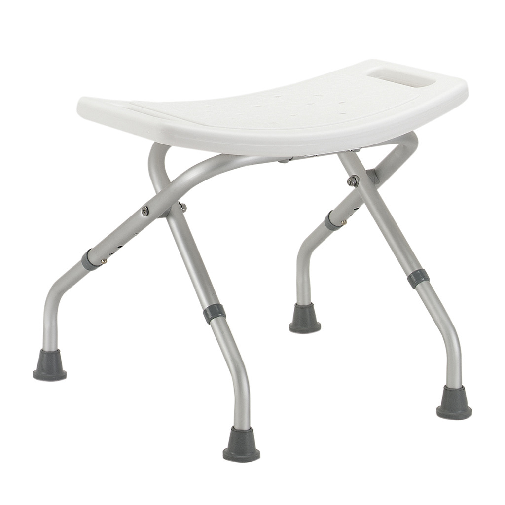 The Drive Medical Folding Shower Chair without Back (Model Number 12486) is a lightweight, space-saving bathing aid engineered for safe, independent showering in tight or temporary spaces, featuring a corrosion-resistant aluminum frame that supports up to 300 pounds while weighing just 5.5 pounds for effortless portability and quick setup in home bathrooms, walk-in showers, or travel accommodations. Its blow-molded plastic seat measures 20 inches wide by 12 inches deep with built-in drainage holes to prevent water accumulation and promote rapid drying, while tool-free height adjustment in one-inch increments from 13.75 inches to 19.75 inches accommodates various user heights and tub or shower thresholds, ensuring optimal comfort and accessibility for seniors, post-surgical patients, or individuals with mobility challenges. The angled legs with non-skid rubber tips provide rock-solid stability on wet surfaces without damaging tiles or fiberglass, and the innovative folding design collapses flat to a mere 3-inch thickness for convenient storage behind doors, in closets, or inside luggage, making it an ideal solution for small apartments, assisted living, or on-the-go hygiene needs. Easy to clean with mild soap and water, this pre-assembled chair promotes confidence and reduces fall risk during personal care routines, and it is backed by Drive Medical’s limited lifetime warranty against defects in materials and workmanship for the original purchaser when acquired through authorized dealers, delivering enduring reliability and peace of mind for sustained safety and convenience.