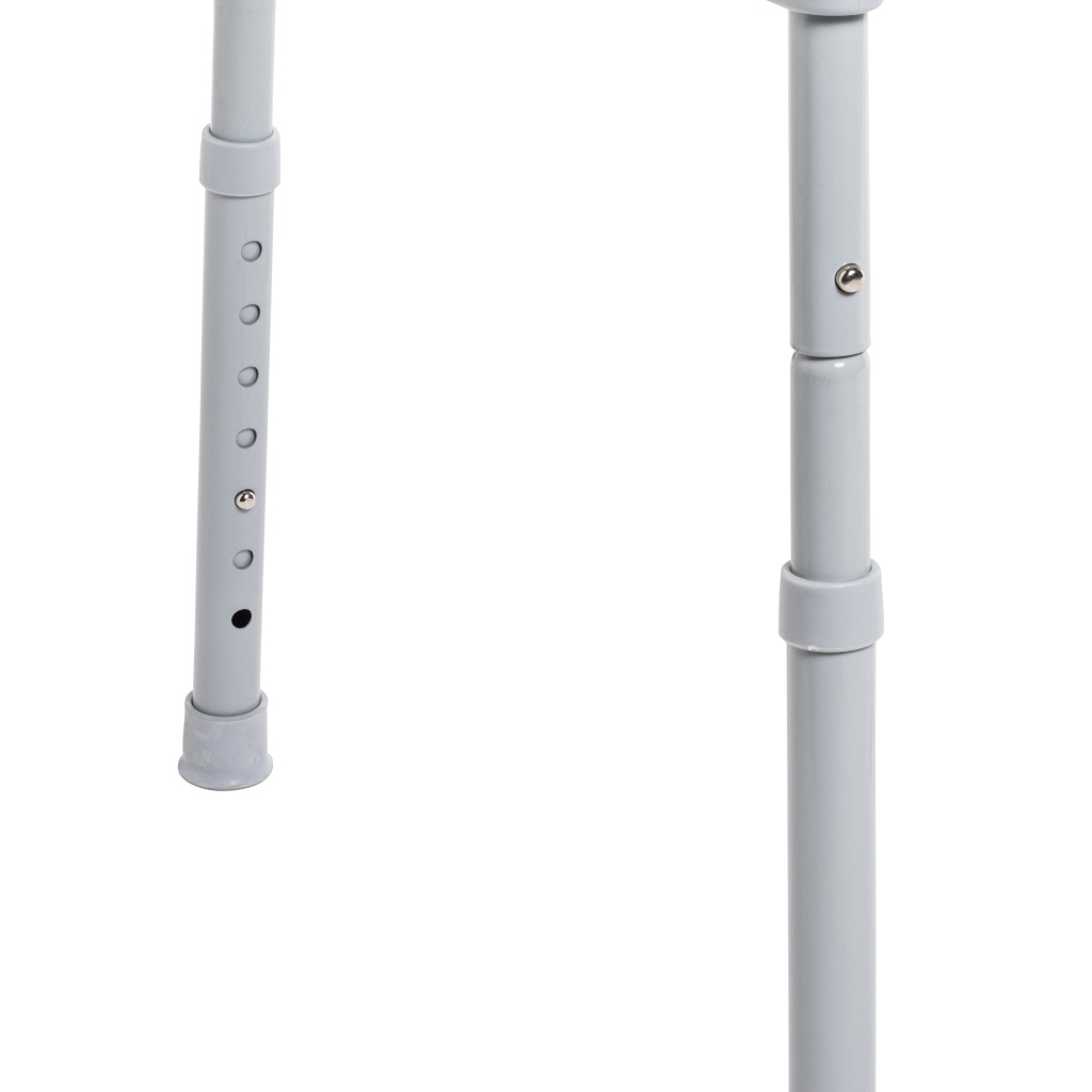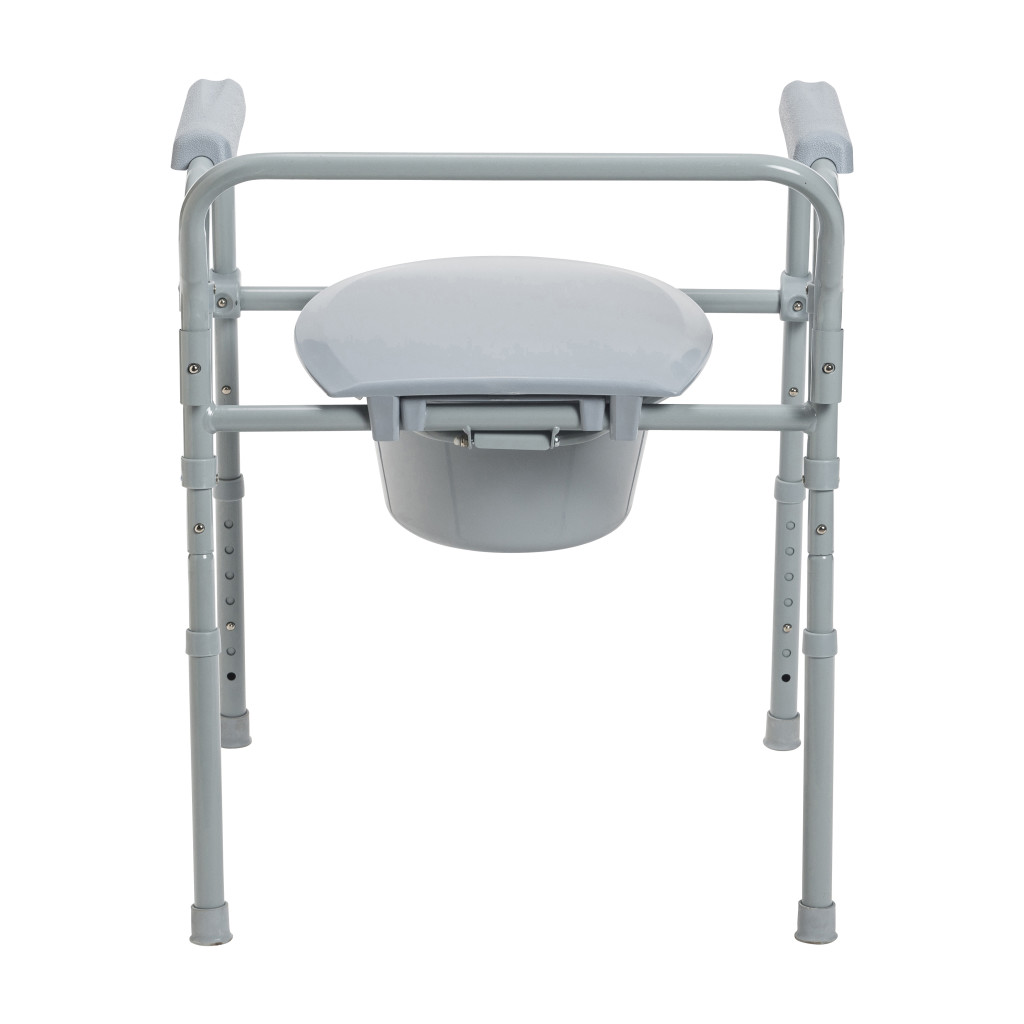 The Drive Medical Folding Steel Commode (Model Number RTL11158KDR) is a versatile, space-saving toileting solution engineered for bedside or bathroom use by individuals with limited mobility, post-surgical recovery, or chronic conditions, featuring a durable powder-coated steel frame that supports up to 350 pounds while weighing just 14 pounds and folding flat to 5 inches wide for effortless storage in closets, vehicles, or behind doors. Its tool-free assembly adjusts seat height from 16.5 to 22 inches in one-inch increments via snap-button legs to accommodate various user statures and toilet heights, while the 13-inch wide by 14-inch deep contoured plastic seat with lid, angled design, and removable 7.5-quart pail with carry handle and splash guard provide comfortable, hygienic operation over or beside standard toilets. The non-skid rubber tips ensure secure placement on tile, hardwood, or carpet, and the easy-to-clean surfaces wipe down quickly with mild soap and water or disinfectants to maintain superior hygiene between uses. Ideal for seniors, rehabilitation patients, or caregivers seeking a portable 3-in-1 bedside commode, toilet safety frame, or raised toilet seat that promotes dignity and independence without permanent modifications, this pre-packaged commode arrives with comprehensive instructions for immediate deployment. Backed by Drive Medical’s limited lifetime warranty on the frame and one-year limited warranty on components against defects in materials and workmanship for the original purchaser when acquired through authorized dealers, the RTL11158KDR delivers enduring reliability, convenience, and peace of mind for sustained comfort and accessibility.