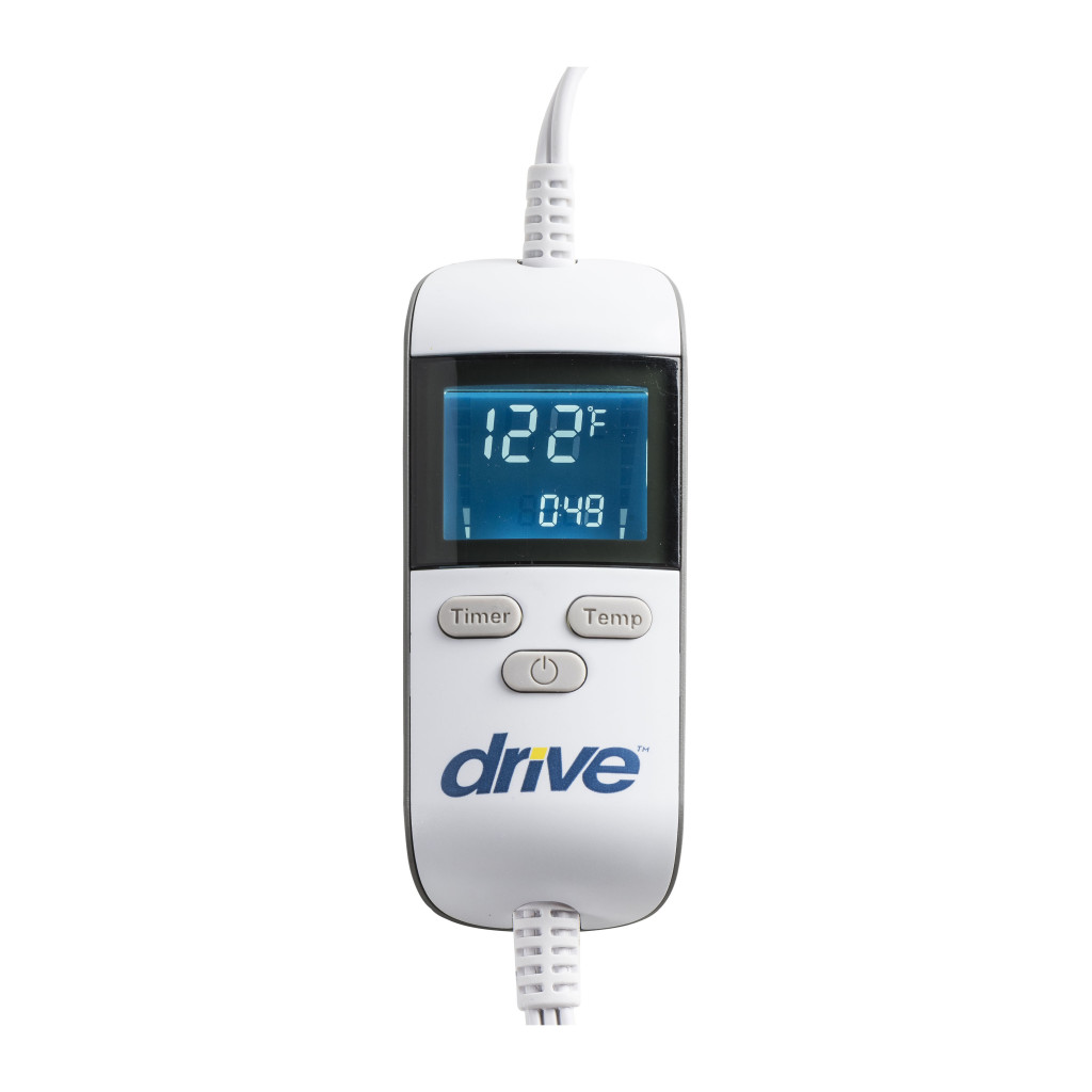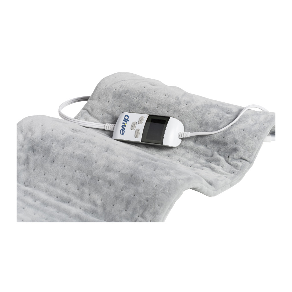 The Drive Medical Heating Pad (Model Number RTL19G007GR) is a versatile, user-friendly therapeutic device engineered to deliver fast-acting dry or moist heat therapy for effective relief from muscle aches, joint pain, arthritis, and minor injuries, featuring a lightweight, flexible polyester construction measuring 12 inches wide by 24 inches long and just 0.25 inches thick that conforms comfortably to any body part such as the back, neck, shoulders, or legs while weighing only 1.5 pounds for effortless portability in home, travel, or clinical settings. Its innovative absorbent sponge integrated into the pad enables moist heat that penetrates tissues quickly and safely to enhance circulation and relaxation, complemented by advanced real-time temperature monitoring that prevents overheating for secure, consistent performance, while the digital display offers six customizable temperature settings ranging from 113 degrees Fahrenheit to 158 degrees Fahrenheit and six countdown timer options from 15 minutes to 2 hours for personalized sessions tailored to individual needs. The intuitive control panel includes an on/off switch, easy temperature and timer adjustments, and a clear indicator light for straightforward operation without complex programming, and the machine-washable pad ensures simple maintenance and hygiene between uses, arriving with a convenient elastic fastening strap for secure positioning and a portable tote bag for storage or on-the-go convenience. Ideal for seniors, athletes recovering from strains, or anyone seeking soothing, non-invasive pain management to promote faster healing and improved daily comfort, this gray-finished heating pad combines cutting-edge safety features with ergonomic design to foster independence and well-being in therapeutic routines. Backed by Drive Medical’s limited lifetime warranty against defects in materials and workmanship for the original purchaser when acquired through authorized dealers, this essential heat therapy tool delivers enduring reliability and peace of mind for long-term relief and performance.