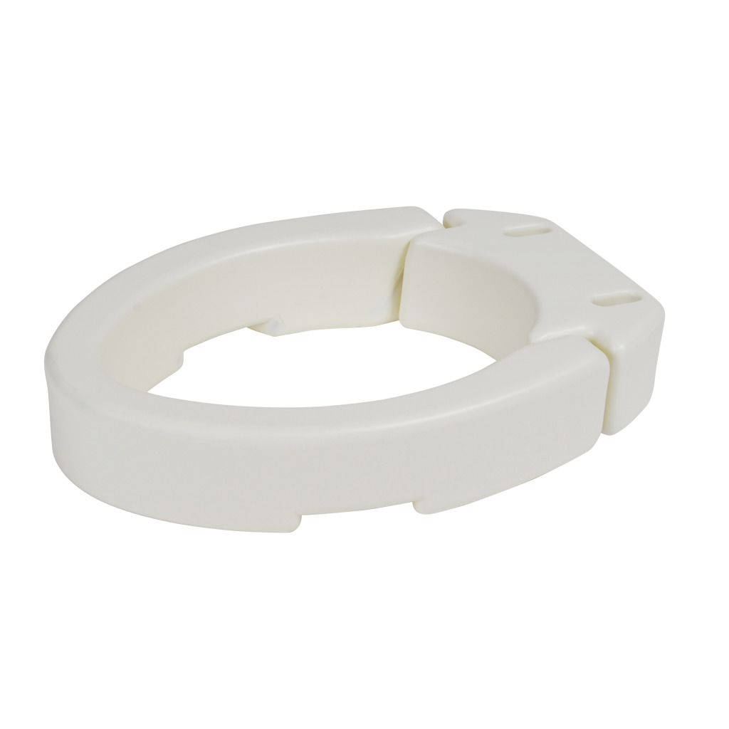 The Drive Medical Hinged Toilet Seat Riser, available in model numbers RTL12607 (standard) and RTL12608 (elongated), is a practical bathroom safety solution designed to assist individuals with limited mobility, arthritis, or post-surgical needs by raising the toilet seat height by 3.5 inches to reduce strain on hips and knees. Constructed from heavy-duty molded plastic, it supports up to 250 pounds and features a unique hinged design that allows the riser to fold up and out of the way when not in use, facilitating easy cleaning and access to the toilet bowl. The riser attaches securely to most standard (RTL12607) or elongated (RTL12608) toilet bowls without tools, ensuring a stable, wobble-free fit, and its lightweight, portable design makes it suitable for home or travel use. Ideal for seniors or those recovering from injury, this riser enhances independence by simplifying sitting and standing, with a durable build that maintains strength without sacrificing portability. Drive Medical provides a limited lifetime warranty on the Hinged Toilet Seat Riser, ensuring long-term reliability and customer satisfaction for this essential mobility aid.