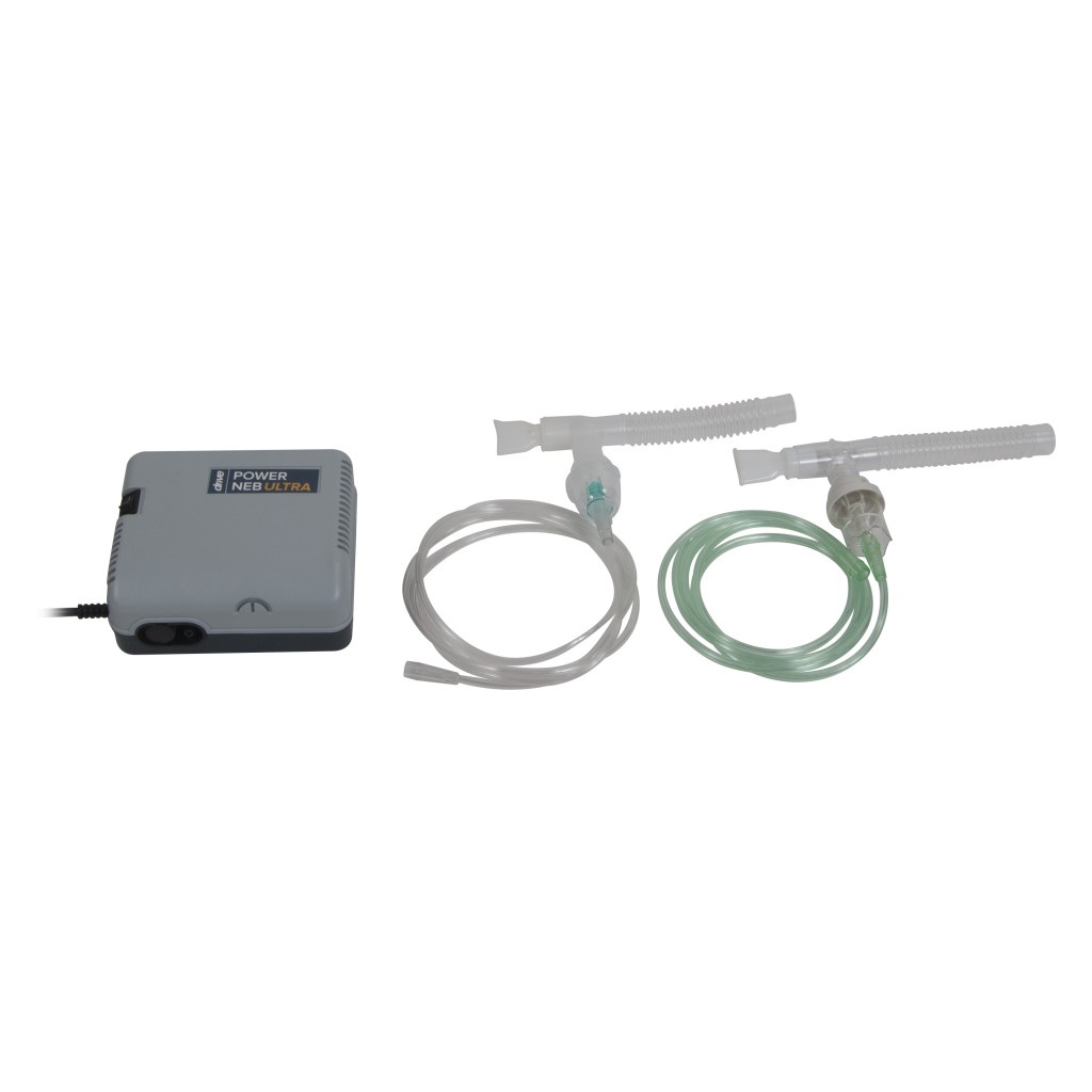 The Drive Medical Power Neb Ultra Nebulizer with Disposable Neb Kit is a high-performance, easy-to-use nebulizer designed to provide fast and effective aerosol therapy for individuals with respiratory conditions such as asthma, COPD, or other chronic lung diseases. This compact and durable nebulizer delivers consistent medication delivery with a powerful piston pump, ensuring efficient treatment in a shorter amount of time. Available in two configurations—18080 (single nebulizer with disposable Neb Kit) and 18081 (single nebulizer with both disposable and reusable Neb Kit)—the Power Neb Ultra is designed to provide a reliable solution for both home and clinical use. Equipped with a quiet, reliable piston compressor, the Power Neb Ultra Nebulizer offers smooth operation with minimal noise, allowing users to undergo therapy in a comfortable and relaxed environment. The unit is designed with ease of use in mind, featuring simple controls for adjusting airflow and a built-in compartment for storing the nebulizer kit and accessories. The included disposable Nebkit ensures proper medication delivery and is hygienic, as it eliminates the need for cleaning after each use. Item 18081 also includes a reusable Nebkit, offering an additional option for ongoing use. The Power Neb Ultra Nebulizer is lightweight and portable, making it easy to transport and use at home, at work, or while traveling. Its durable construction ensures long-lasting performance, and its high-quality components provide dependable therapy for individuals with varying respiratory needs. The nebulizer is also equipped with a standard mouthpiece and optional child-friendly mask, making it adaptable for both adult and pediatric use. Drive Medical backs the Power Neb Ultra Nebulizer with a limited 5-year warranty, offering users peace of mind and confidence in their purchase. Whether you need regular or occasional nebulizer treatments, the Drive Medical Power Neb Ultra Nebulizer with Disposable Neb Kit offers an efficient, practical solution for managing respiratory health.