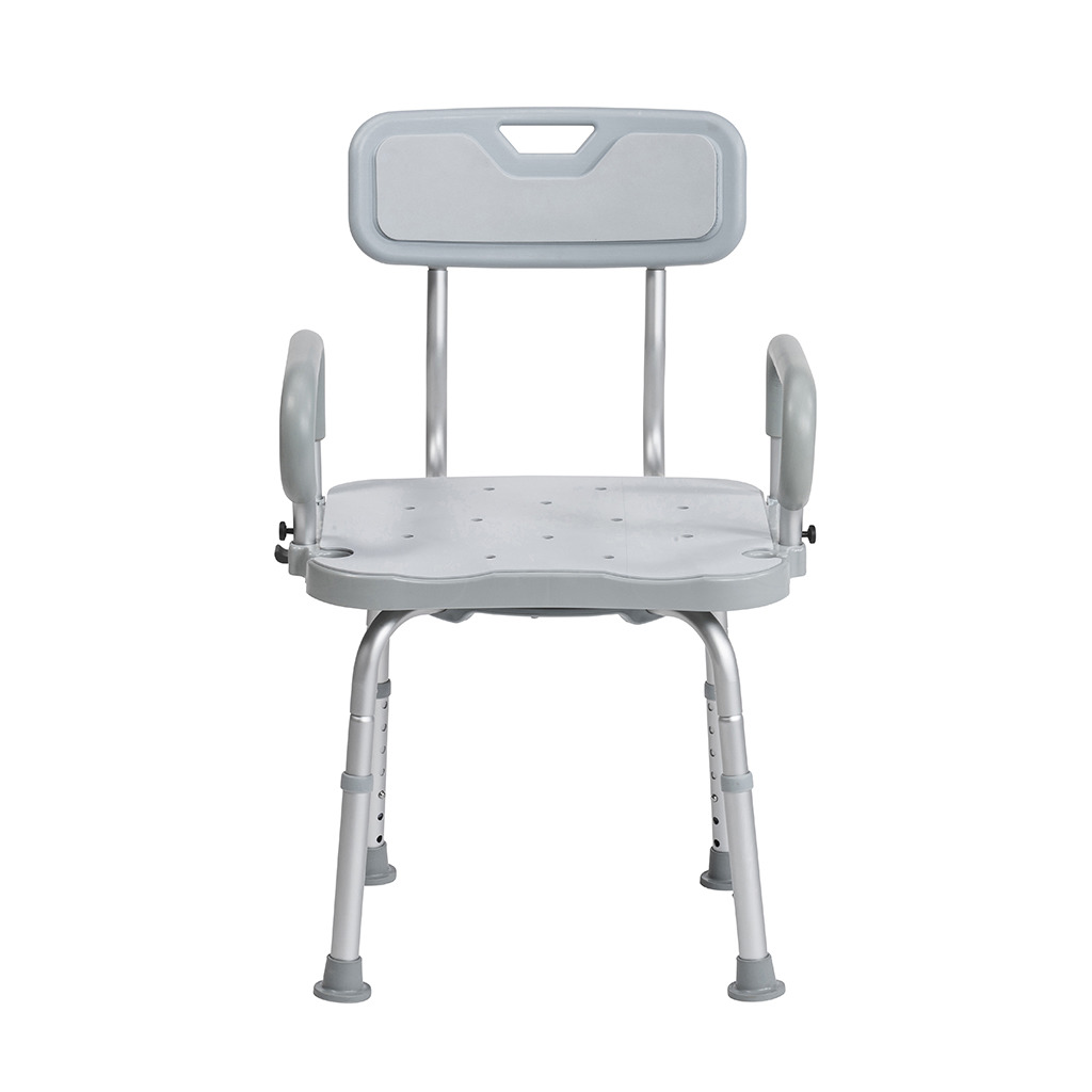 Compact and customizable, the PreserveTech™ Swivel Bath Chair provides a safe transfer in and out of the tub for those with limited mobility or other disabilities. Featuring a 360° swivel and locking at every 90°, the chair pivots for increased comfort and reduces friction wounds. The seat can be adjusted from 15” to 22”, and the padded armrests can be raised out of the way or lowered and locked into place.