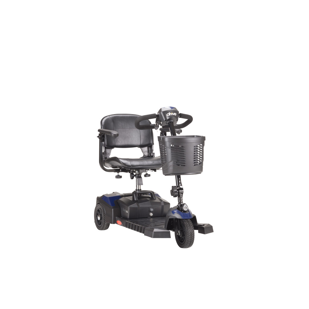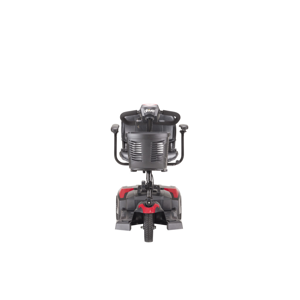 The Drive Medical Scout Compact 3-Wheel Scooter (Model Number SFSCOUT3) is a lightweight, portable travel mobility solution engineered for effortless indoor and outdoor navigation, featuring a durable yet compact steel frame that weighs just 78 pounds with batteries while supporting up to 300 pounds for reliable performance in home, shopping, or community environments. Its 3-wheel design with 8-inch front and rear wheels provides a tight 39-inch turning radius for superior maneuverability in narrow hallways or crowded spaces, complemented by an adjustable tiller, padded swivel seat with flip-back armrests, and height settings from 17 to 19 inches for personalized comfort during extended use. The easy-to-use delta tiller with ergonomic hand controls includes variable speed up to 4.25 mph, intuitive forward/reverse levers, and an electromagnetic brake system for smooth, safe operation, while the quick-connect 12V 12Ah battery pack delivers up to 10 miles per charge and disassembles into five lightweight pieces (heaviest 29 pounds) for convenient vehicle transport without tools. Ideal for seniors, rehabilitation patients, or anyone seeking independent mobility without bulk, this pre-assembled scooter arrives with a front basket, battery charger, and anti-tip wheels in a sleek red finish that wipes clean easily. Backed by Drive Medical’s limited lifetime warranty on the frame, one-year limited warranty on the electronics and drivetrain, and 6-month limited warranty on the battery against defects in materials and workmanship for the original purchaser when acquired through authorized dealers, this essential compact 3-wheel scooter delivers enduring reliability, freedom, and peace of mind for sustained daily mobility.