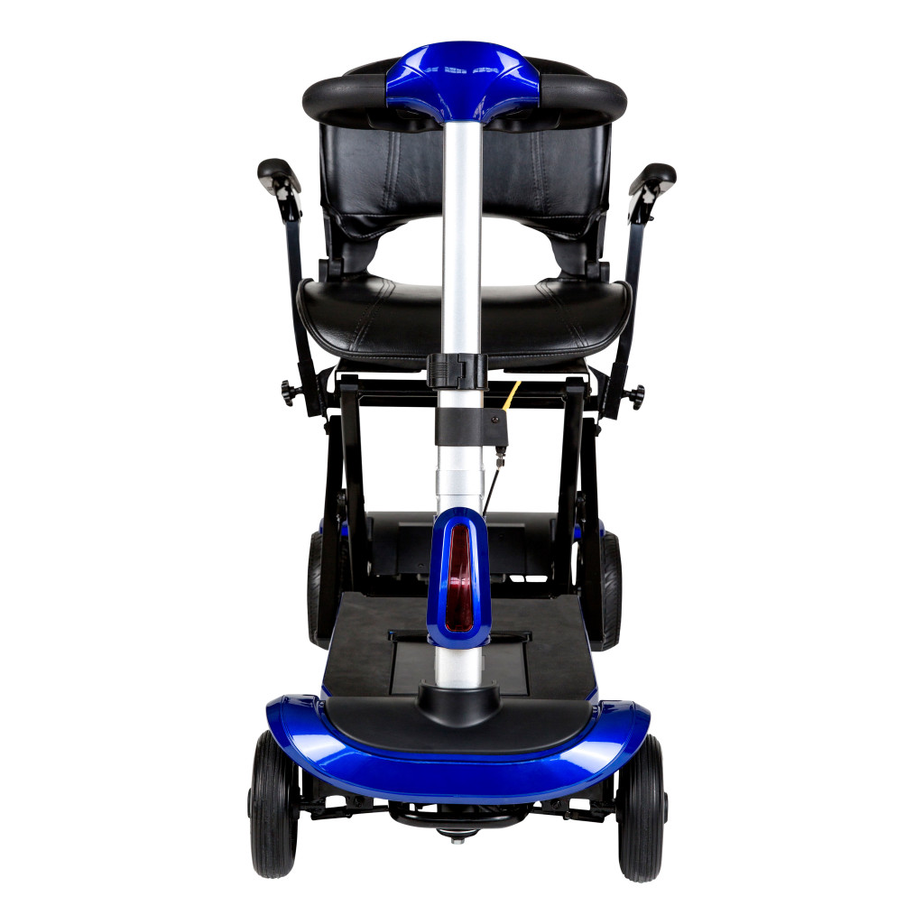 The Drive Medical ZooMe Auto-Flex Folding Travel Scooter (Model Number FLEX-AUTO) is a revolutionary, fully automatic folding mobility solution engineered for effortless portability and instant usability, featuring a lightweight aluminum and steel frame that weighs just 60 pounds with battery while supporting up to 300 pounds and folding/unfolding in under 15 seconds at the touch of a single button on the wireless key fob or dashboard control. Its compact 3-wheel design with 8-inch front and 9-inch rear solid, puncture-proof tires delivers a tight 45-inch turning radius for excellent indoor maneuverability and smooth outdoor performance, while the deluxe 17-inch wide padded seat with flip-back armrests, adjustable tiller, and full LED lighting package ensure all-day comfort and visibility. Powered by an airline-approved 25.9V 11.5Ah lithium-ion battery, it reaches speeds up to 4 mph with a 13-mile range per charge and folds to a suitcase-like 24 × 19 × 32 inches for easy storage in car trunks, closets, or airplane overhead bins. Ideal for active seniors, frequent travelers, or anyone seeking the ultimate grab-and-go scooter without manual lifting or disassembly, this pre-assembled ZooMe Auto-Flex arrives in striking red and black with front basket, battery charger, and key fob. Backed by Drive Medical’s limited lifetime warranty on the frame, 2-year limited warranty on electronics and drivetrain, and 12-month limited warranty on the battery against defects in materials and workmanship for the original purchaser when acquired through authorized dealers, the ZooMe Auto-Flex delivers unmatched convenience, reliability, and peace of mind for sustained freedom and adventure.